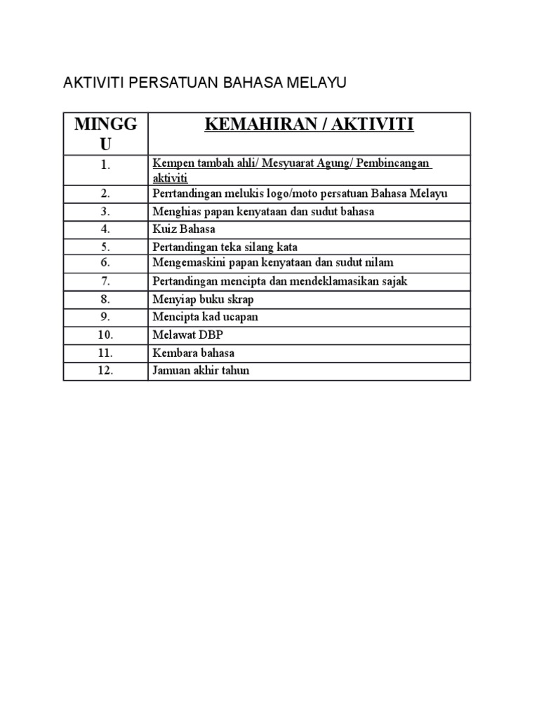 Aktiviti Persatuan Bahasa Melayu Pdf