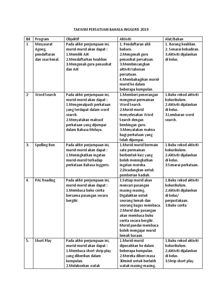 Perancangan Aktiviti Persatuan Bahasa Melayu 2015 Pdf
